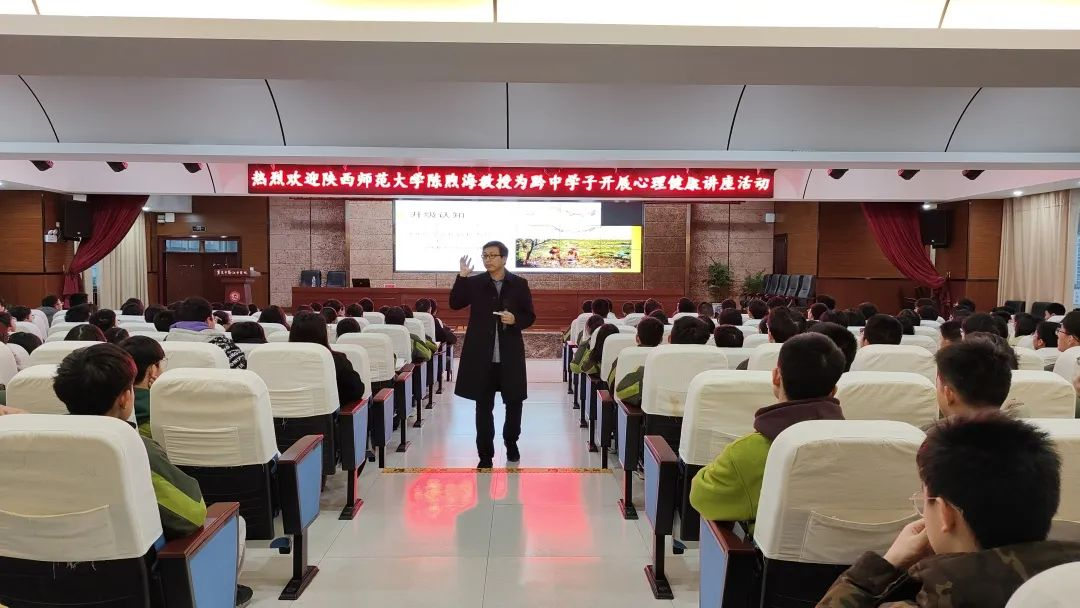 学院陈煦海教授为黔江中学开展“高中生心理建设——‘斩忧’‘十六诀’”主题心理讲座。他以丰富鲜活的事例、幽默风趣的语言介绍了积极模式下高中生心理建设的调适方法。陈煦海教授的讲座引人入胜,得到在座高中生的热烈反响和广泛好评。