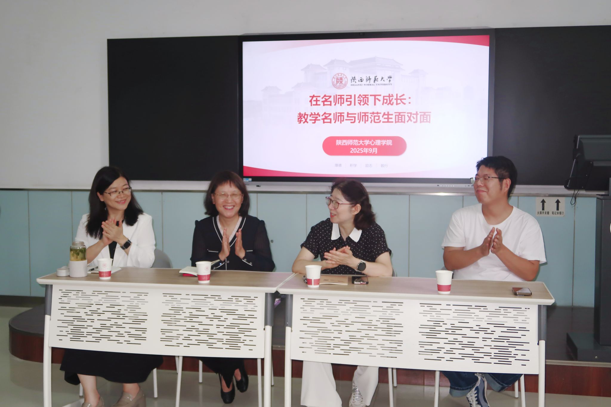 老师们回答了同学们关心的“如何提升心理团辅的技能”、“未来就业形势”等方面的问题,充分发挥了教育名师在师范生养成教育中的示范引领作用。本次活动进一步营造了尊师重教的浓厚校园氛围,有助于引导我院师范生传承优良师德师风,培养教育情怀与专业素养。